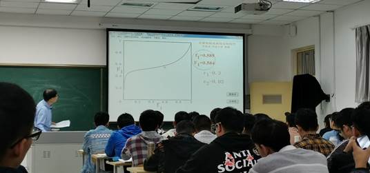 公开课上郭霖老师对以往章节的习题课进行了讲解。整个公开课过程中,郭老师以热情饱满的精神面貌讲授,答疑解惑的过程中循循善诱,春风化雨。郭老师提出“通过一道题,‘串’起一章的内容”的理念,通过布置小组作业使得学生将所学的知识融会贯通,而且充分了解学生对所学知识的掌握情况。讲解习题的过程中,郭老师不仅娴熟地运用以往章节中的知识点对疑难问题进行清晰的解析,而且运用自己开发的“共聚物组成曲线绘制程序”软件展示“不同组分的共聚物组成曲线的绘制”。