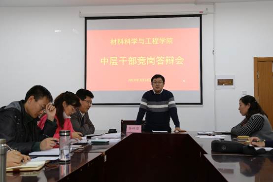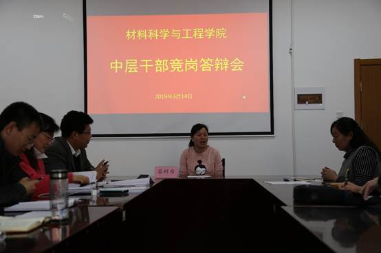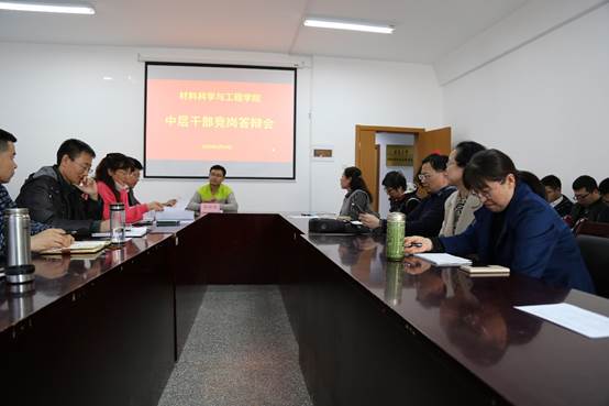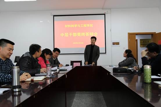 在科技楼D座403会议室召开了全体教职工会议,公开选拔复材系、无机非系、实验室、服务地方办公室主任等4个学院内设机构负责人。本次选拔面向全院教师,采取个人竞岗陈述、现场提问答辩,全体教职工投票的形式,力求做到公平公正,把那些热心学院工作、有一定管理能力、德才兼备的优秀学者选拔出来。经过报岗、资格审查,有6名年龄都在35岁左右的年轻教师进入答辩环节。经过全体教师投票,并报学院党委研究,最后确定吴广磊教授为复材系主任、张连营副教授为无机非系主任、袁华副教授为实验室主任、谭业强副教授为服务地方办公室主任。