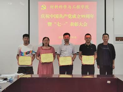先进党支部、优秀党员、优秀党务工作者的决定》,授予高分子材料与工程系党支部等2个党支部“先进党支部”荣誉称号,吴广磊等4位同志“优秀共产党员”荣誉称号,李洪亮等2位同志“优秀党务工作者”荣誉称号,王雨霄同志“优秀学生党员”荣誉称号。