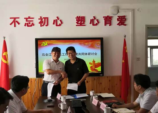 、崂山区第六中学和崂山区张村河小学在崂山区第六中学签署党建共建协议。学院党委书记万宗喜、党委副书记张新柏、崂山六中校长任成志、崂山张村河小学校长石业江和崂山区石业江书记名工作室成员出席签字仪式。