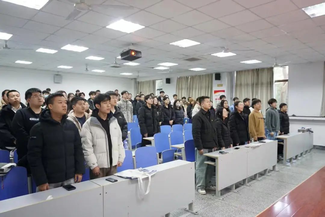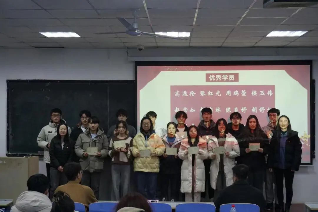 在博学楼104教室举行入党积极分子培训班结业仪式暨先锋模范岗颁发仪式。学院本科生党支部书记宋淑婷,博士研究生党支部书记毕英娜、硕士研究生第一党支部书记张育恒、硕士研究生第三党支部书记徐千懿、硕士研究生第二党支部副书记于本涛,以及全体2024年秋季学期新发展党员和入党积极分子出席本次主题党日活动。