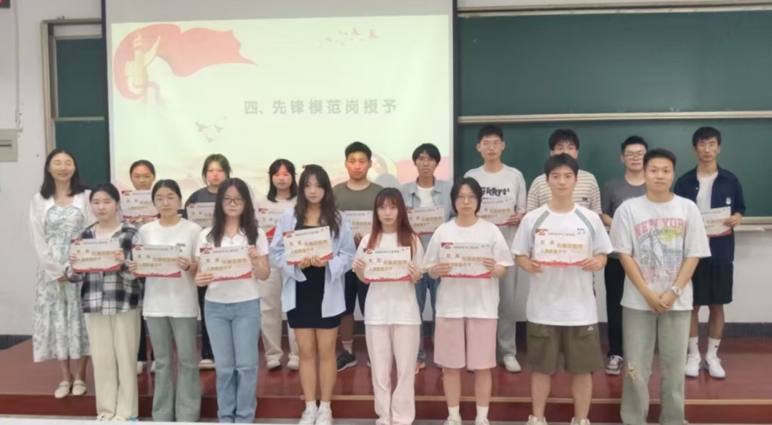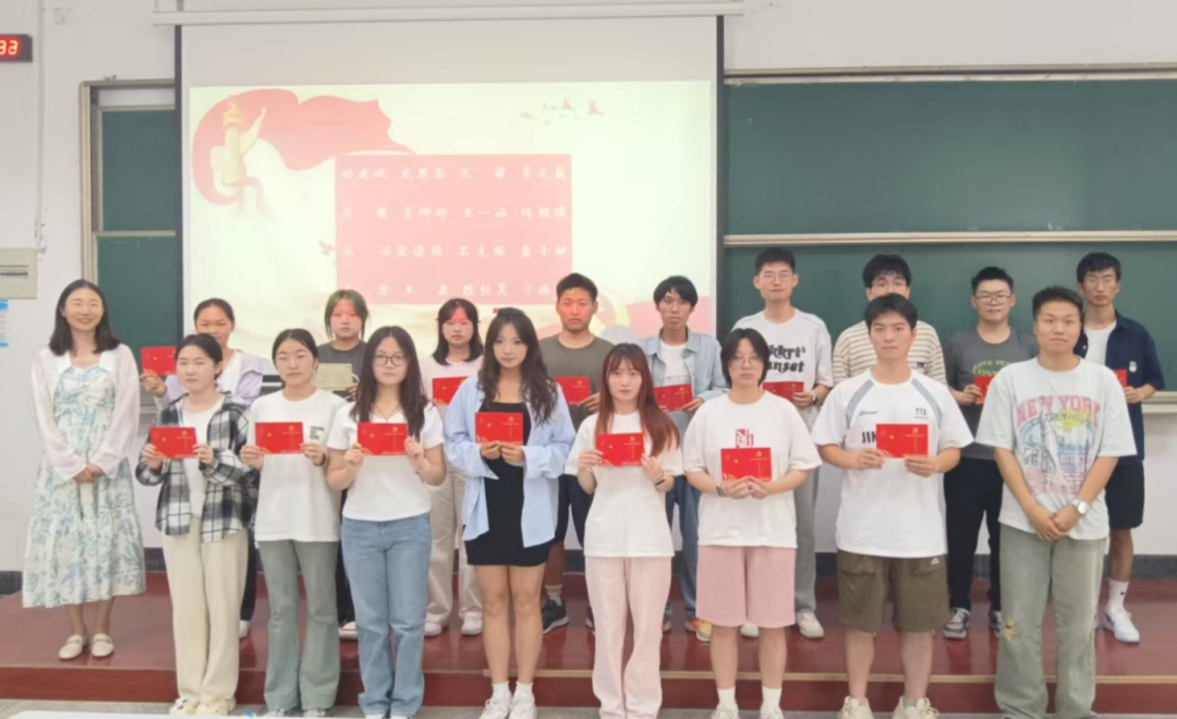 在博远楼101教室隆重举行入党积极分子培训班结业暨先锋模范岗颁发仪式。本科生党支部书记宋淑婷、硕士研究生第二党支部副书记于本涛、青年先锋学社骨干成员,以及全体2025年春季学期新发展入党积极分子出席仪式。本次仪式由姜文豪同志主持。