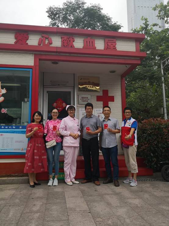 2019年6月26日,材料学院机关党支部举行主题党日活动,他们以无偿献血的形式向党的生日献礼。机关支部共有教职工5人,其中党员4人。支部的4名同志(一位出差)在支部书记薛玉章的号召下,上午十一点来到青岛血站佳世客采血点集体献血,共献出血站目前急需的A型和O型血1000毫升。这次活动得到了血站工作人员的大力支持和高度称赞,并在学院教职工中引起了积极反响。