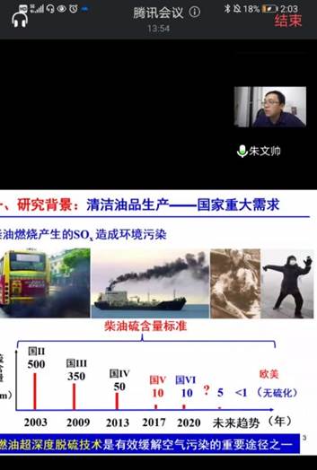 报告中,朱文帅教授首先深入浅出的给大家介绍了二维氮化硼材料的性质,及其催化应用潜力。其次,朱老师详细介绍了他所开展的一系列BN用于脱硫反应的研究工作及成果。重点介绍了他们课题组提出的气相剥离法制备少层二维BN,以及通过负载纳米颗粒,调控官能团、掺杂调控能带结构等方面的设计思路和取得的成果。最后朱老师做了归纳总结并展望了后续的工作规划及国际前沿方向,分享了自己的科研心得。报告结束后,师生就报告内容展开了热烈的讨论,大家均对朱老师的工作表达了极大的兴趣。