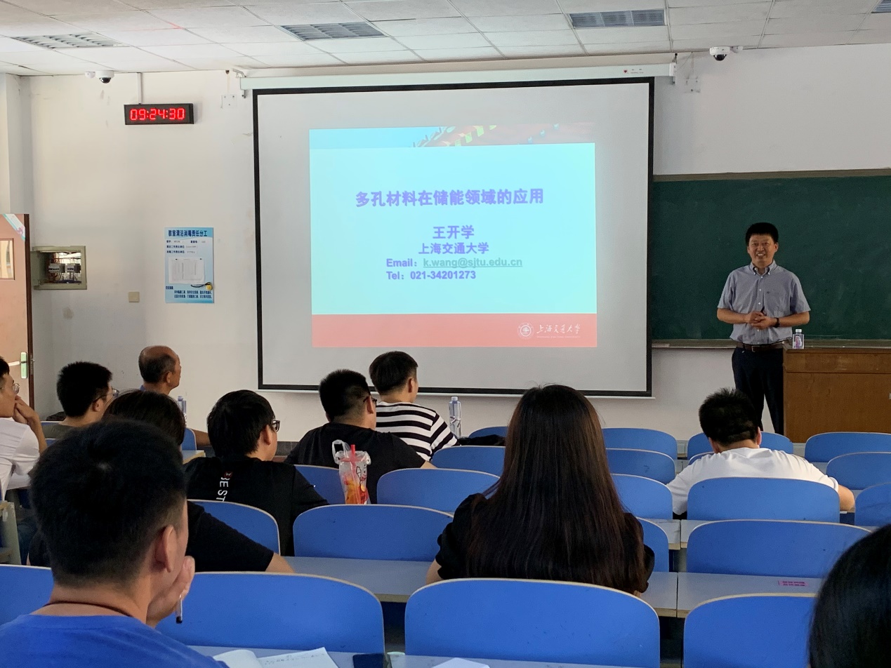 2020年8月28日上午,上海交通大学王开学教授应材料学院邀请,在博知楼102教室为我校学生作了题为《多孔材料在储能领域的应用》的夏季学期高端学术报告,报告由材料学院副院长李洪亮教授主持。
