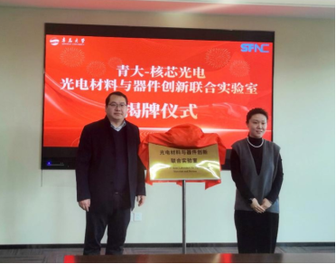 党委书记张奎勤与山亭区科技局局长张颖共同为光电材料与器件创新联合实验室揭牌。
