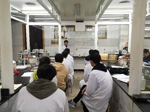 参赛老师袁华和彭乔虹为此次比赛做了精心的准备,比赛一开始,参赛老师先简单介绍了此次实验的目的,引导学生回忆了测高聚物分子量的几种方法,引出了黏度法,随后详细讲解了如何用黏度法测高聚物的黏均摩尔质量,之后让学生自己动手操作,评委老师通过近距离观察、适时向学生提问了解实验课程的开设情况,最后参赛老师进行了教学反思,指出了本堂课的不足之处。