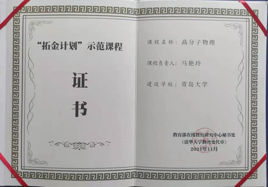 近日,教育部在线教育研究中心公布了首批拓金计划示范课程名单,老王论坛 马艳玲副教授主讲的《高分子物理》课程成功入选,该课程将在学堂在线平台面向全国教师开放观摩。