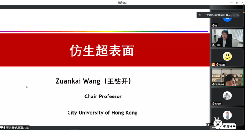 202277日上午900,香港城市大学工学院副院长王钻开教授应学院邀请,作了题为《仿生超表面》的学术报告,本次讲座由学院院长隋坤艳教授主持,百余名师生参会。