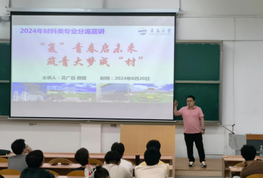 6月20日13:00,在金家岭校区西院1号教学楼111教室,召开大类专业分流宣讲会,高分子材料与工程系主任王世超、复合材料与工程系主任吴广磊、辅导员李明栋和2023级全体学生参加。