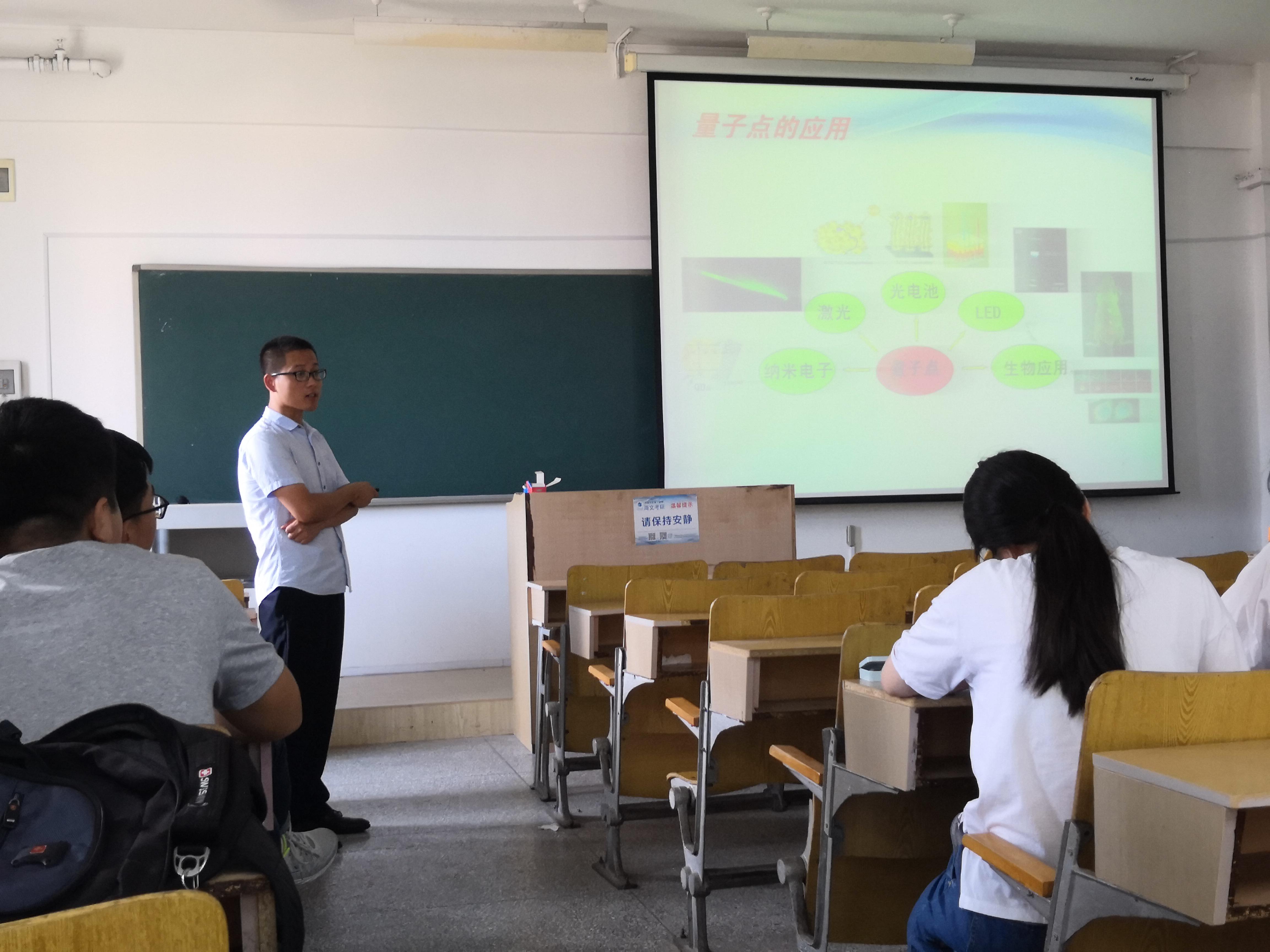 青年教师杜中林在东12教507为本科生作了题为《高效率量子点敏化太阳能电池的设计与构建》的学术报告。