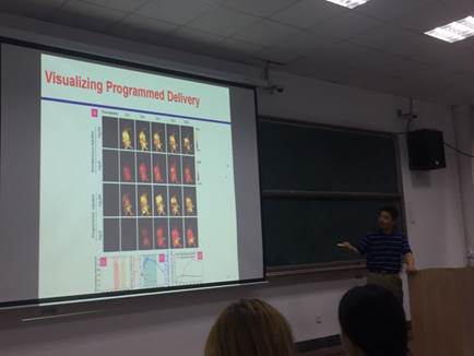 王强斌教授报告题目为“纳米–生物界面的理性设计与功能应用”,报告涉及Ag2S量子点的制备、修饰方法及其在近红外二区生物成像中的应用。就近红外二区生物成像在生物医学中的应用及未来发展趋势等问题进行了深入的探讨,与会师生产生受到很大启发,引发了热烈的讨论。
