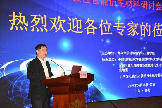主办,中国材料研究学会纤维材料改性与复合技术分会、我校省部共建生物多糖纤维成形与生态纺织国家重点实验室共同协办的“青岛∙柔性智能仿生材料研讨会”在青岛花园大酒店举行。校长夏东伟出席大会开幕式并致辞。