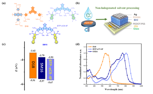 在过去的几年里,有机太阳能电池(OSCs)的性能得到了迅速的提高。现在,最先进的OSCs的活性层通常由宽带隙聚合物给体和低宽带隙小分子受体组成,供体和受体混合活性层的形态必须得到很好的优化。到目前为止,大多数高性能的OSCs是通过对环境有害的卤素溶剂如氯仿、氯苯、1,2-二氯苯等制造的。