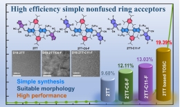 近年来,得益于非富勒烯受体的发展,特别是Y系列受体,有机太阳能电池(OSCs)取得了迅猛的发展。单结和串联结构的OSC的功率转换效率(PCEs)分别超过了19%和20%,表明在未来实际应用中具有巨大的潜力。然而,目前高效的受体通常具有融合环核心,有时导致复杂的合成步骤和低产率。这一未解决的问题将限制OSC的未来商业应用。鉴于此,有必要开发高性能且低成本的光伏材料。在受体方面,最近,研究人员开发了非融合环电子受体(NFREAs)来解决这一挑战。例如,研究人员提出了分子内非共价相互作用来替代共价键,这既可以使分子主链变平,又可以减少受体的合成步骤。基于这一概念,以吲哚并二硫苯(IDT)和环戊[2,1-b:3,4-b‘]二硫苯(CPDT)为核心单元开发了一系列NFREAs,最高PCE达到了15%以上。为了进一步简化分子结构,研究人员还发明了大的立体位阻侧基,可以确保分子的平面性,抑制过度聚集并提高受体的溶解度。通常使用的立体侧链有1,3-二氧苯并、2,4,6-三异丙基苯、二苯胺等。如今,基于这类NFREAs的PCEs可以达到16%以上。未来,有必要开发综合性的NFREAs,可以用于单结构(二元和三元)或串联OSC。为实现这一目标,NFREAs的精确分子工程需要深入研究,包括立体位阻侧链、电子吸引末端基团等。