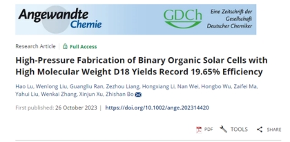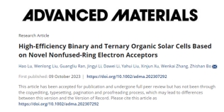 路皓副教授在国际顶级材料期刊《Advanced Materials》和国际顶级化学期刊《德国应用化学》(Angewandte Chemie)以及中国化学会旗舰期刊《CCS Chemistry》上分别发表题为“High-efficiency binary and ternary organic solar cells based on novel nonfused-ring electron acceptors”和“High-Pressure Fabrication of Binary Organic Solar Cells with High Molecular Weight D18 Yields Record 19.65% Efficiency”以及“Chlorinated thiazole based low-cost polymer donors for high efficiency binary and ternary organic solar cells”论文,论文的第一单位均为老王论坛