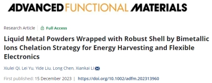 李现凯副教授在材料领域顶级期刊《AdvancedFunctional Materials》上发表题为“Liquid Metal Powders Wrapped with Robust Shell by Bimetallic Ions Chelation Strategy for Energy Harvesting and Flexible Electronics”的论文(DOI为://doi.org/10.1002/adfm.202313960),论文的第一单位为老王论坛