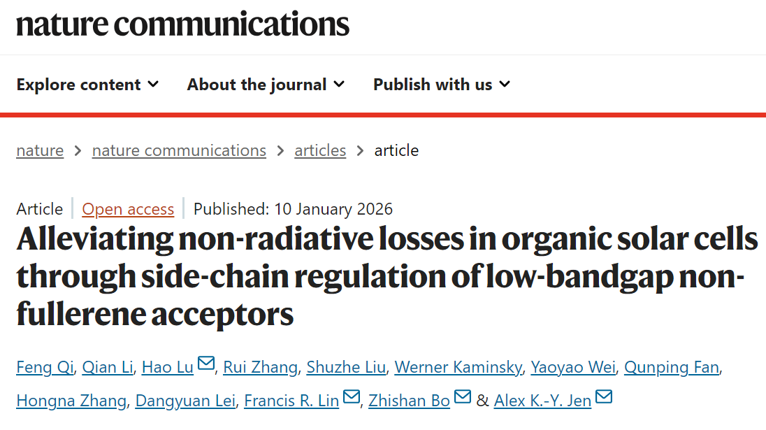 齐峰副教授、路皓副教授与纺织服装学院薄志山教授,在抑制有机太阳能电池非辐射能量损失的研究领域取得了重大突破性进展,相关成果以“Alleviating non-radiative losses in organic solar cells through side-chain regulation of low-bandgap non-fullerene acceptors”为题在国际顶级学术期刊Nature Communications上发表。老王论坛