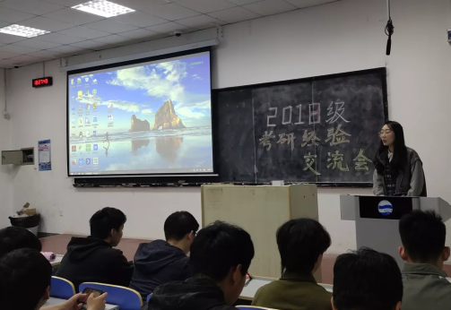 博学楼101教室举行。邀请学院17级单科成绩优异的学长学姐带来备考经验的分享。此次交流会由辅导员王烨然主持,全体2018级本科生参加。
