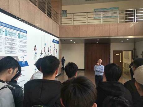 刘敬权教授向同学们介绍了自己的研究方向、研究成果、研究生培养及石墨烯应用技术创新研究院研究团队,讲解了石墨烯优异的光学、电学、力学特性,以及石墨烯在材料学、微纳加工、能源、生物医学和药物传递等方面的广泛应用。