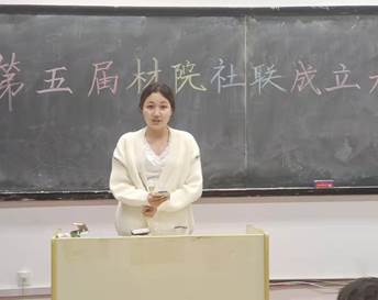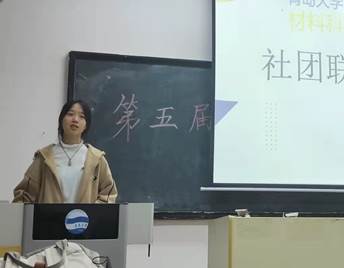 社联主席马衣拉发言。马衣拉主席向新志愿者介绍了社联的职能和工作宗旨,希望同学们能在工作中得到提高,也叮嘱同学们要和部长友好相处、共同进步。
