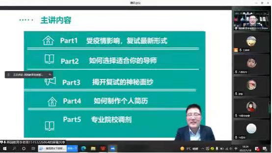 于1月、3月分别举办了两场研究生考试复试、调剂指导讲座,邀请考研专家李振老师对初试情况做了全面的分析,并结合疫情新形势,在导师选择、简历制作、难度分级、复试技巧等方面对同学们进行了针对性的指导。通过两次讲座,帮助同学们明确了复试或调剂阶段的主要目标,同时也激励大家在最后准备的关键阶段放下包袱、坚定信心、全力以赴。