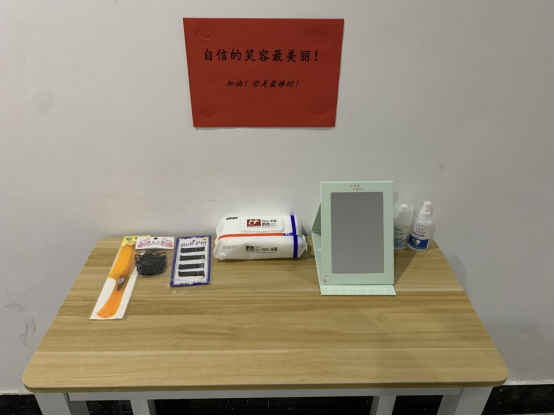 在候场处准备了湿巾、梳子、发绳、镜子等物品,便于同学们整理仪表,更好的迎接面试。