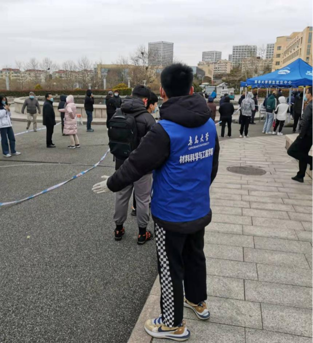此外,在学院学生党支部迅速集结成立了由279人组成的5支党员抗疫先锋突击队的同时,学院团委也组织团员青年积极参与学校疫情防控志愿服务,用实际行动保障检测工作的安全、有序、规范和高效性。
