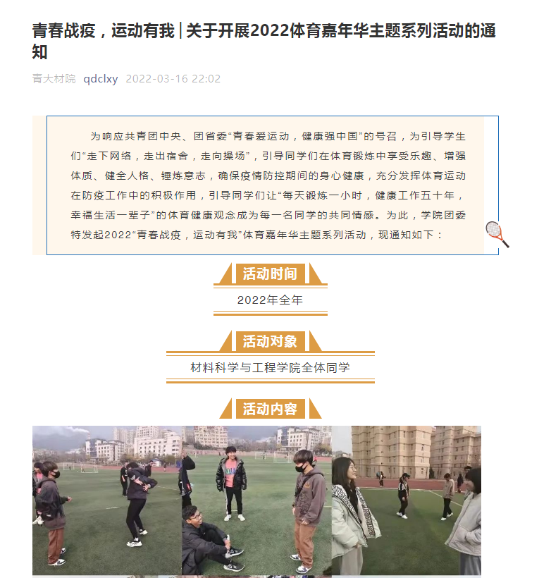 各年级辅导员为学生开展科普防疫知识,加强生命安全健康教育,以疫情防控为契机,积极开展思想引领,及时传达学校决策部署,做好政策解读,高效完成疫情防控工作。低年级辅导员引导学生做好学习科研规划,有效反馈学生的网课诉求,帮助学生适应线上教学;全面排查学业困难学生,组建学习互助小组,确保每个学生不掉队。关注学生身心健康,强化心理咨询疏导,密切联系重点关注学生和校外未返校学生,提供心理疏导安抚;号召各班级、团支部开展丰富多样的文体活动等,凝聚抗疫人心。