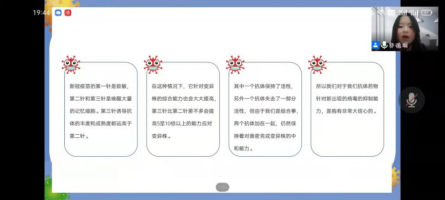 学子举行线上安全教育。本次宣讲由协会负责人刘晓璐主持,主要从防疫安全、校园禁毒和校园反诈等方面为同学们进行了宣传教育。