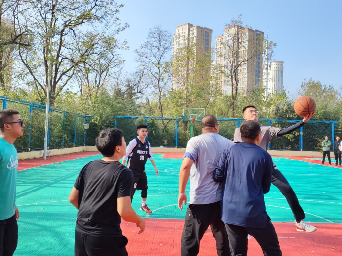 研究生会在仁园篮球场组织举办首届“研师亦友”篮球赛。教师队邀请到黄林军,王兵兵,沈文飞,李道浩,徐秉辉,惠彬,姜浩洋等十余位老师参加,学生队由2020-2022级研究生组成。