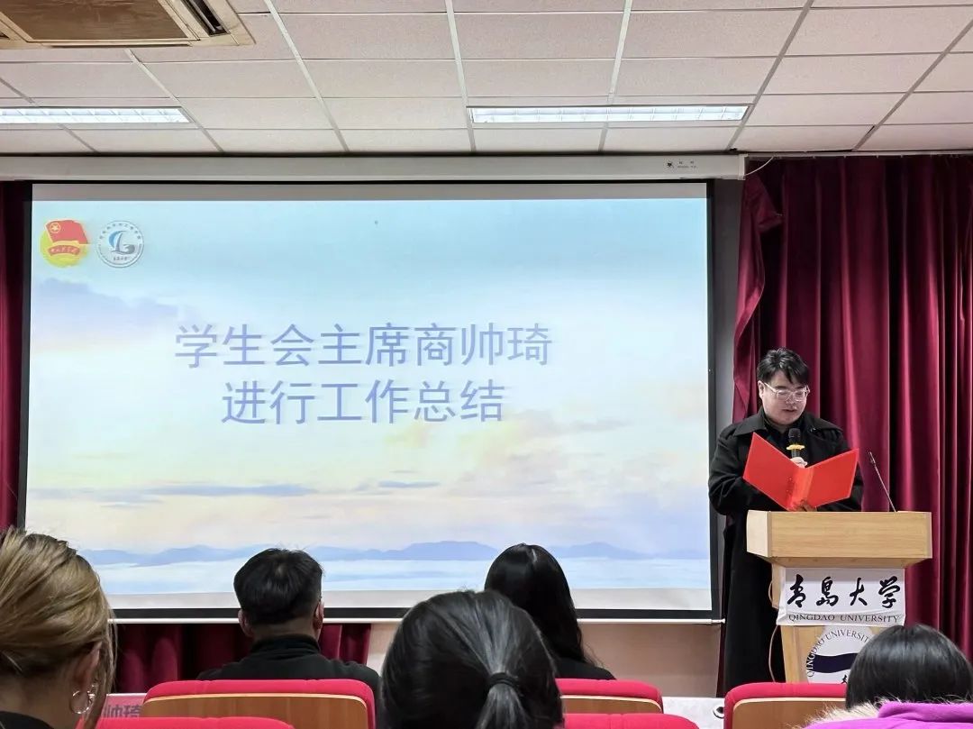 学生会主席商帅琦对本学期工作进行总结。他提出,本届学生会严格坚守“全心全意为同学服务”的宗旨,从造福同学出发,开展学术科创、文艺体育、志愿服务等丰富多彩的活动,从多方面提升学院学生素养。对于下学期的工作开展提出两点希望和要求:一是在下一学期工作中全心全意投入服务,杜绝形式主义,二是加强学生会成员价值观建设,充分发挥集体意识、奉献意识等价值观的导向,让我们为建设一支锐意进取、和衷共进的学生骨干队伍贡献自己的青春力量!