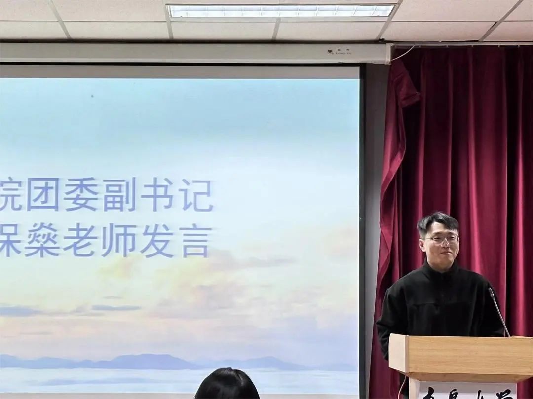 学院团委副书记李保燊老师发言,李老师回顾了近年来学生会的不断发展,分析了本学期学生会工作遇到的主要问题,真诚感谢了学生会全体成员为学院学生工作的辛勤付出。