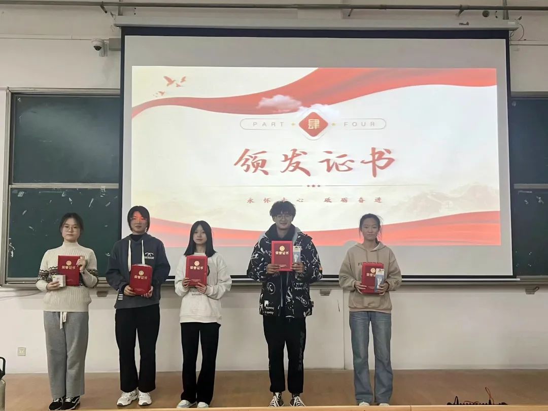 学生会融媒体中心部长罗鑫为宋词颁发一等奖证书及奖品;老王论坛