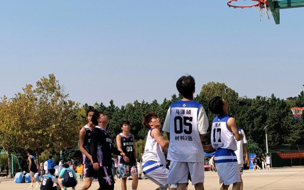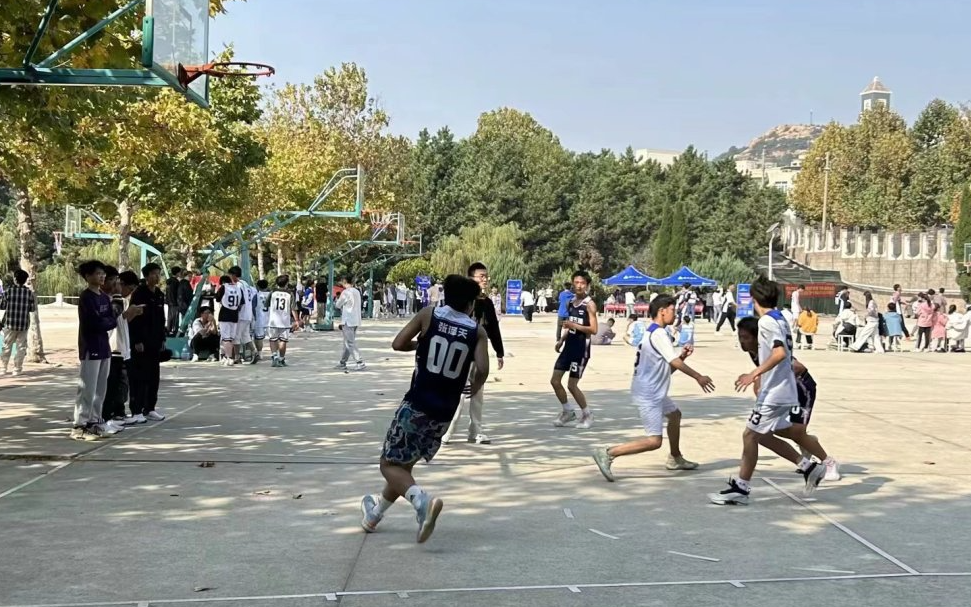 金家岭校区东院篮球场举办了新生“迎新杯”篮球赛。草秋已至天气凉,对篮球的热爱却让时光定格秋色,也定格球员们挥洒的汗水和奋力拼搏的身影。