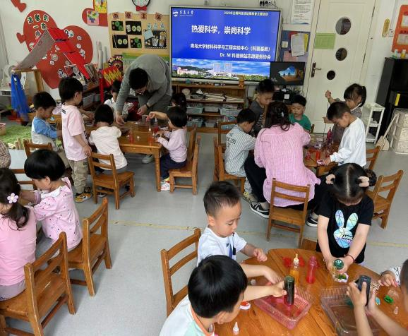 本次科技活动周期间,材料科普基地讲师团走入亚麦山城智慧熊幼儿园、青岛师范附属幼儿园进行了两场科普活动,面向麦岛社区、金门路小学和麦岛中学等开展了六场开放日活动,科普服务200余人次。由于实验设计的趣味性,参加活动的学生们对材料科学知识有了初步的印象,进一步推动了“热爱科学,崇尚科学”价值观的养成。
