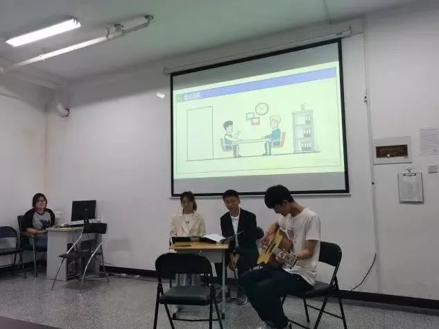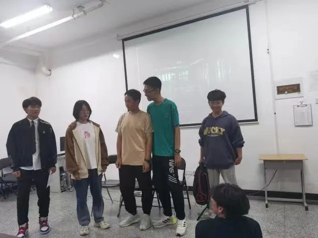 心理协会指导老师林国红,学生会主席岳贤阳,主席孙文谈,主席刘文晋,学生会社团中心部长杜淼,部长杨晓慧,部长余秋进。各位嘉宾为话剧评分,依据各嘉宾打分的平均分数的高低次序,决出一二三等奖。由各参赛作品和海报所获取的票数评选出最佳人气奖。接下来让我们欣赏各班的精彩演出。