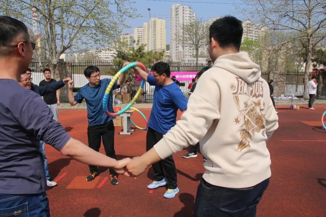 第二个项目是“一圈到底”环节,各队队员手拉手围成一圈,从第一名队员开始,用身体传递呼啦圈,直到最后一名队员将呼啦圈传出,用时最短的队伍即为胜者。让久坐办公室的身体动起来,这个项目也考验队友之间的团结协作精神,互相支持、加油鼓劲才能合作无间!