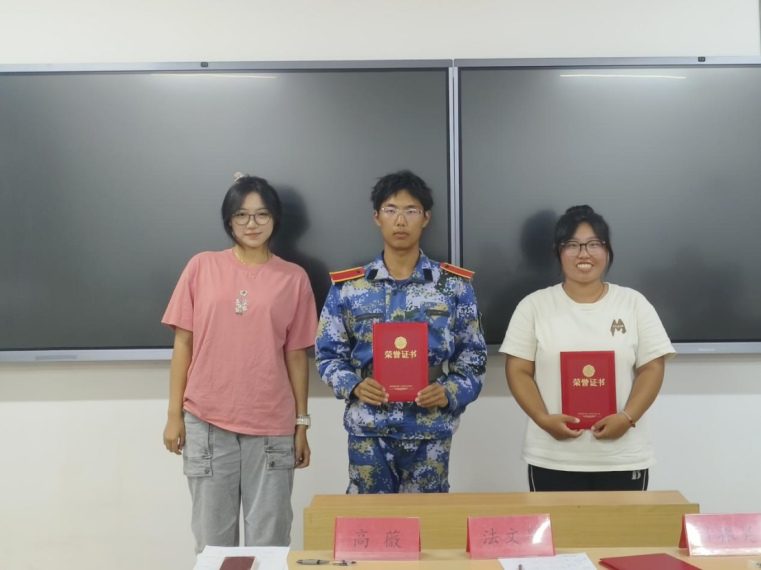 评委们不仅对参赛选手的认真态度与不懈努力给予了高度肯定,还以专业且客观的态度,全面分析了每位选手的优点与不足,并悉心提出了宝贵的改进建议。最后,由艺术小组部长高薇为程子懿和乔添添颁发三等奖证书;由青年先锋学社社长叶振昊为袁子琪颁发二等奖证书;由学生会执行主席法文昊为吴佳芮颁发一等奖证书。