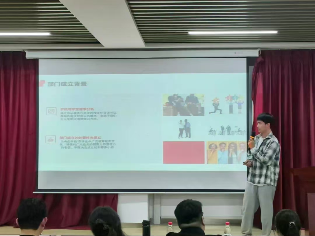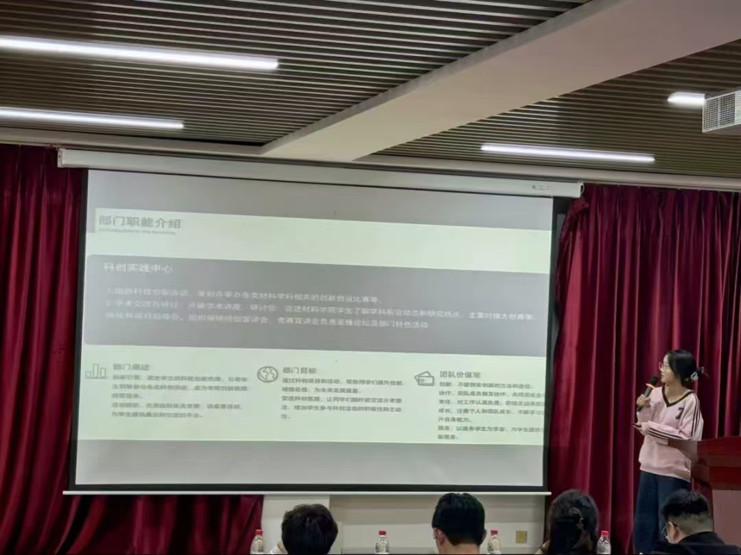 在部门介绍环节,各部门主任介绍了各自部门的工作职能和品牌活动,展示了新同学的风采,同时对未来工作做出规划和展望,给予了新一届学生会干事极大的鼓励和支持。