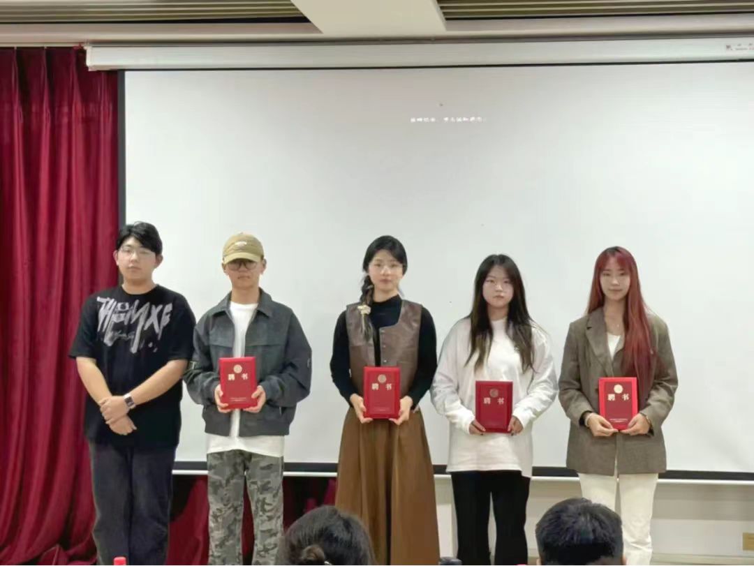 学院团委副书记王尊为第十届学生会主席团颁发聘书,主席团成员为分管部门部长颁发聘书。