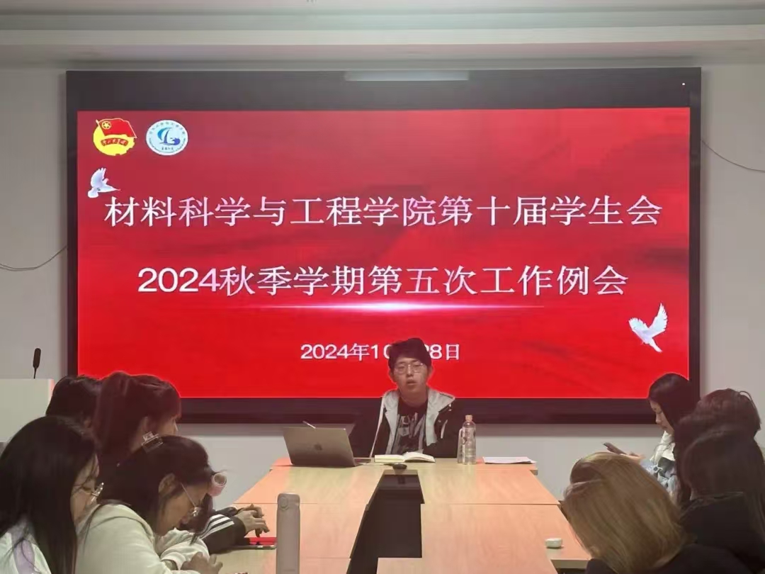 第十届学生会2024秋季学期第五次工作例会暨政治理论学习在慎思楼308会议室举行。本次会议由学生会主席法文昊主持,学生会主席曹毓婧、廖添旭,各部门负责人参加本次会议。