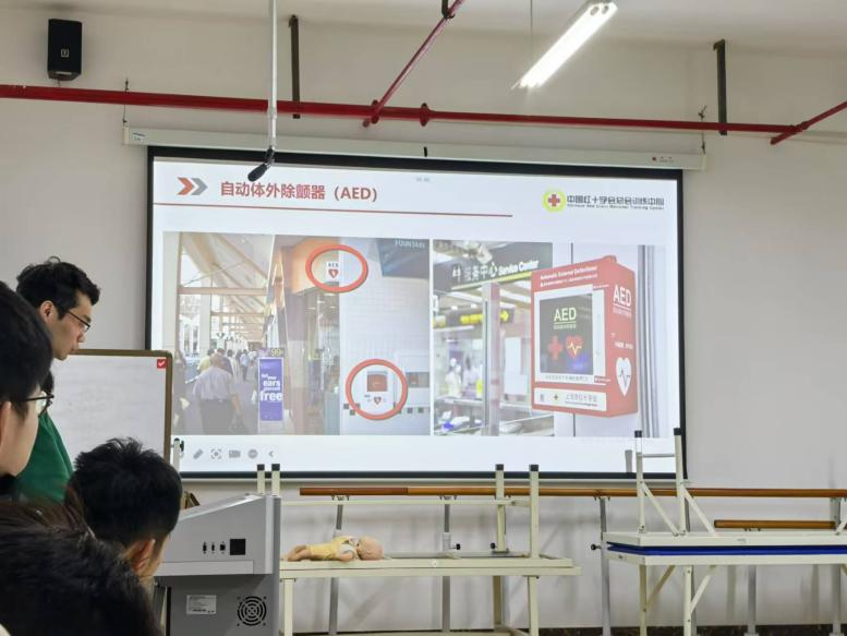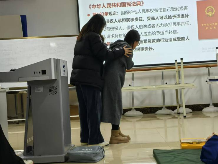 研究生会邀请了青岛红十字会专业人员,在医学教育综合楼B1503室为学生开展了意义非凡的急救知识培训会,内容包括心肺复苏、自动体外除颤仪(AED)的操作使用,以及气道异物梗阻的现场处理。