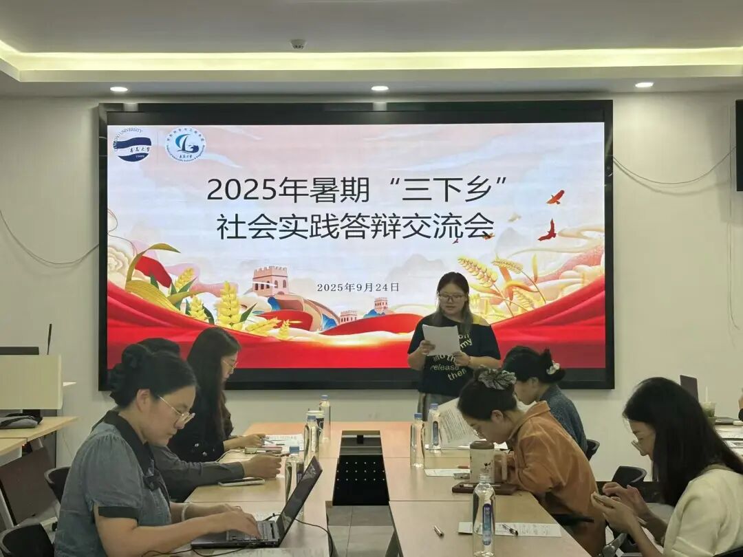 在慎思楼308会议室举行2025年暑期“三下乡”社会实践答辩会。出席本次评审的老师有学院学工办主任林国红老师,院团委副书记王尊老师,辅导员吴洋洋,胡仪,宋淑婷,褚天扬老师。