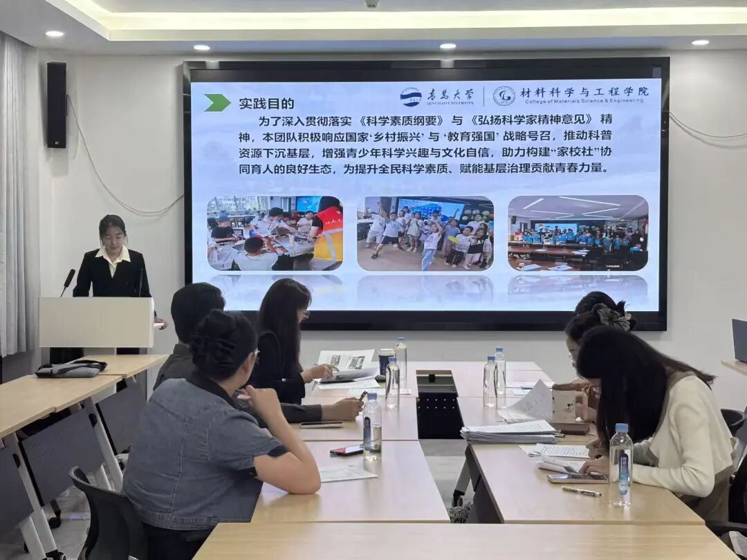 评审会上,各实践团队负责人通过PPT展示的形式,详细汇报了各自团队的社会实践成果和感悟。其中,“‘胶’铸未来,桑梓情深”团队精彩展示了他们在新型环保材料领域所取得的突破性研究成果。该团队的核心目标在于有力助推农业领域的降本增效,通过精准对接与高效整合,将前沿的实验室技术无缝对接到田间地头的实际生产需求之中,确保科研成果能够切实转化为农业生产的强大动力,从而实现科技与农业的有机结合与协同发展;“沭火新编·青春志团”团携手非遗传承人,共同创作“钢八连建连97周年”绒绣锦旗,积极探索“红色+非遗”的融合路径;非遗方面,调研临沭柳编发展与产业化,学习编织技法,参与集市售卖,关注传承与市场推广;生态上,协助清理生态园,调研智能灌溉、无人机植保等科技应用,体验生态种植成果;人才上,拜访老馆长汲取精神力量,设计红色剧本杀以吸引青年传承红色基因。助力学子深化对乡村振兴的理解,强化服务担当。团队特色如繁星各耀其辉,相同的是都以微光汇聚星河,用个体行动托举家国发展。
