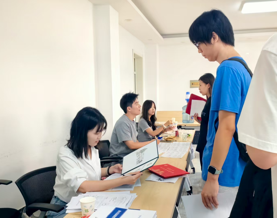 当天,迎新志愿者队伍一大早便在迎新报到处等待新生的到来。在金家岭校区,学院为2025级本科新生打造充满创意与温情的迎新体验。从踏入校门起,由学院学生会和先锋学社学生组成“专属引路员”提供全程陪伴——搬行李、找宿舍、解疑惑,贴心服务堪比“人文导航”。