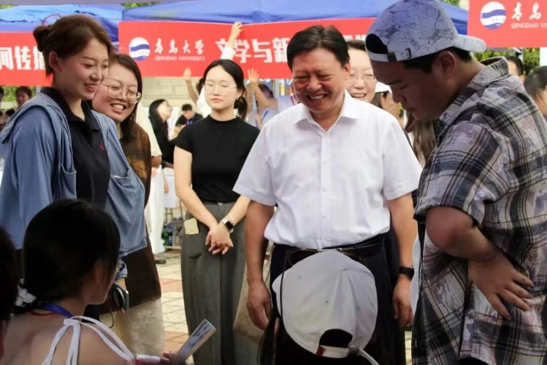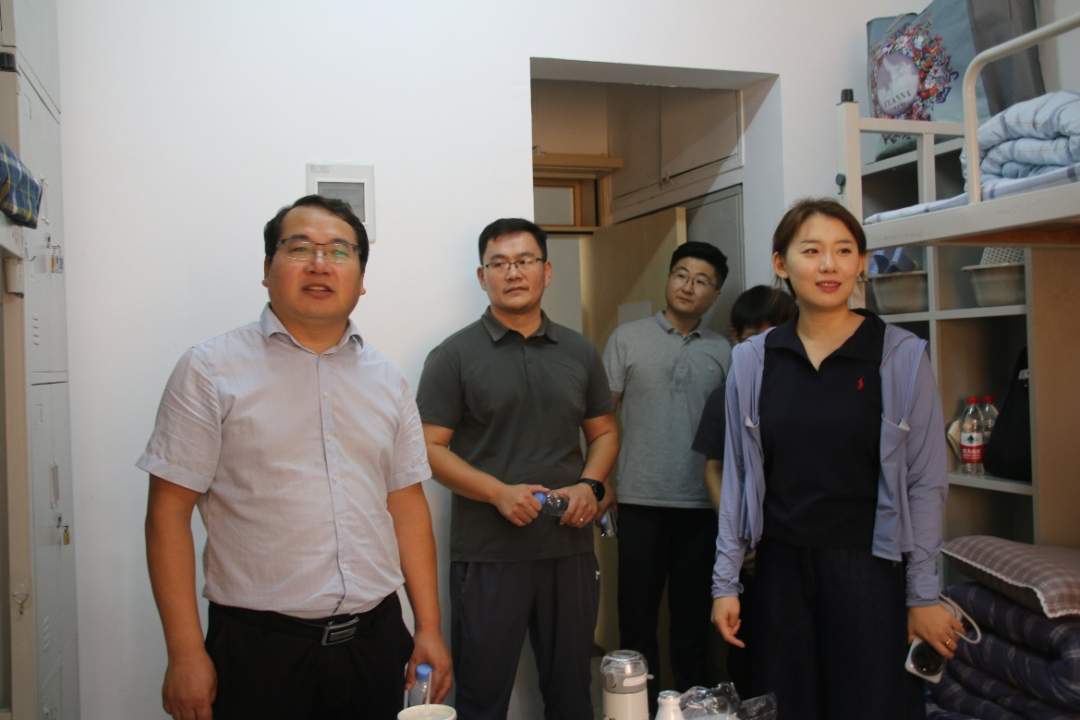 同时学院党委书记张奎勤、党委副书记曹俊率学工队伍赴金家岭校区,学院院长黄林军一行同步抵达浮山校区,分头走进报到点、新生宿舍,为首批到“家”的2025级本、硕、博新生送去“暖心第一访”。