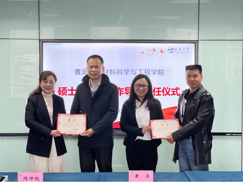 博士毕业生谢丹颁发了硕士研究生合作导师聘书。交流会由学院院长隋坤艳主持,学院班子成员和相关部门负责人参加了会议。