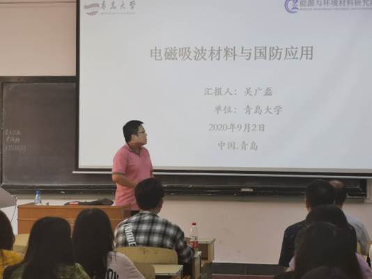 吴广磊老师首先列举了电磁辐射污染对人体的影响与损害,进而引出电磁吸波材料的吸波原理,而后着重介绍了吴老师团队课题组对电磁吸波材料的深入研究,近两年取得的重大成果以及目前的科研状况。