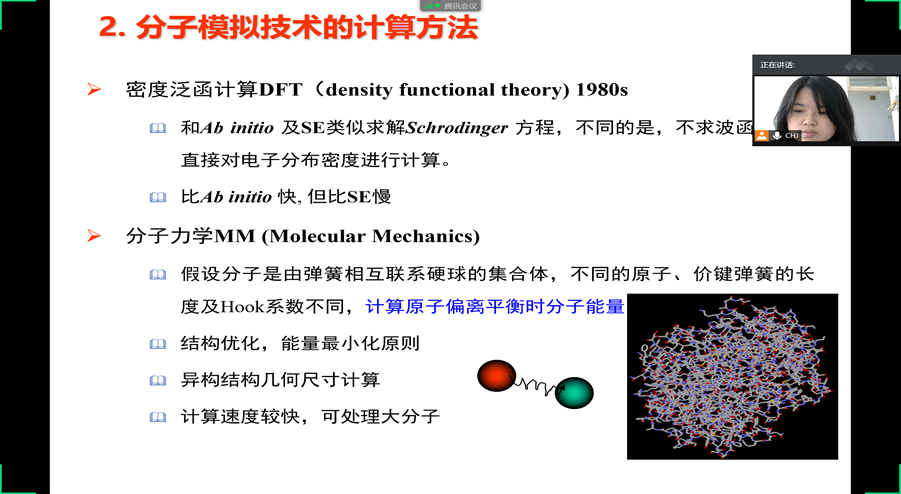 曹海杰老师首先详述了广义上及狭义上分子模拟的概念,随后列举了分子模拟在化学、化工、医学、生物学等方面的应用,探讨了理论与实验结果大胆猜想、小心求证的对接过程,列举了实践中理论计算结果的分析过程。与会学生在心中形成了关于分子模拟的初步概念,为其以后选取科研方向提供了一定的基础。